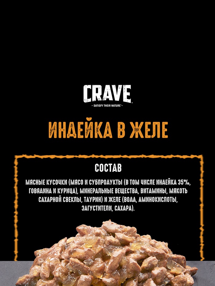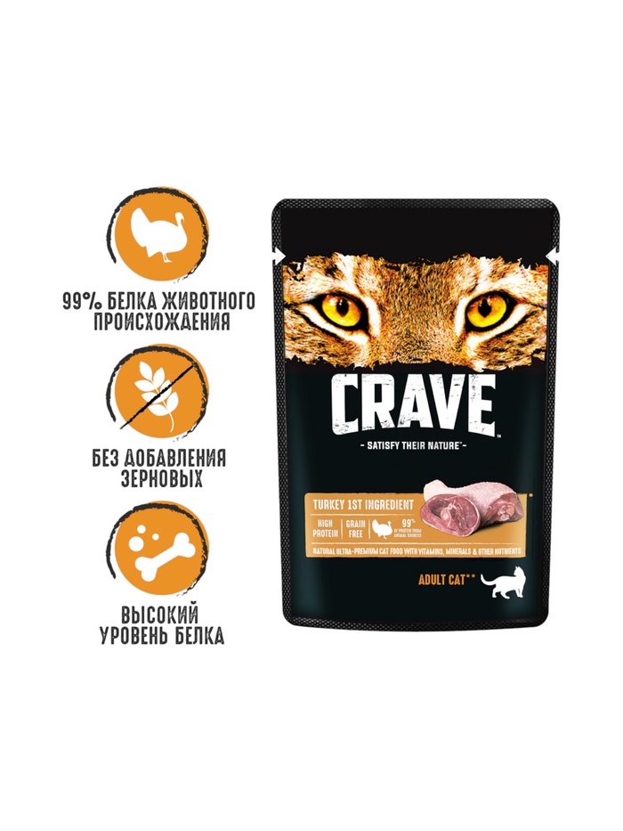 Влажный корм Crave для кошек, пауч индейка в желе, 70 г — Характеристики