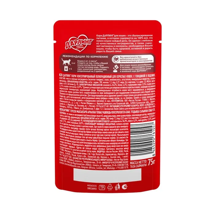 Корм ДАРЛИНГ для кошек – это сбалансированное питание, в котором содержится на 100% всё, что нужно кошке каждый день. Он сделан с любовью из качественных ингредиентов, а также содержит витамины и минералы, необходимые кошке, чтобы быть здоровой, активной и дарить радость Вашей семье.