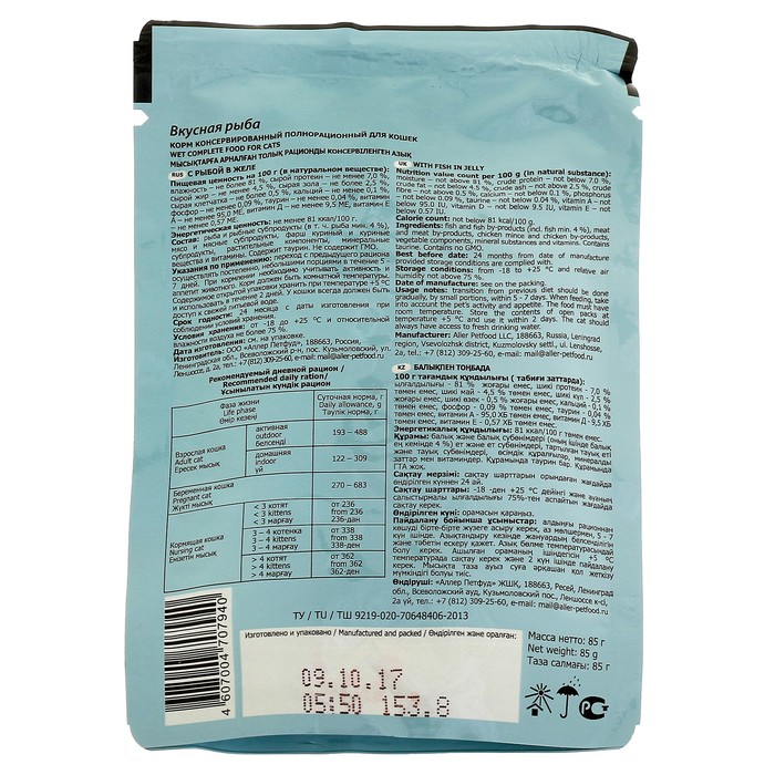 Рекомендации по кормлению: переход с предыдущего рациона следует осуществлять постепенно, небольшими порциями, в течение 5-7 дней. У кошки всегда должен быть доступ к свежей питьевой воде. При кормлении необходимо учитывать активность, возраст, размер и индивидуальные особенности Вашего питомца.