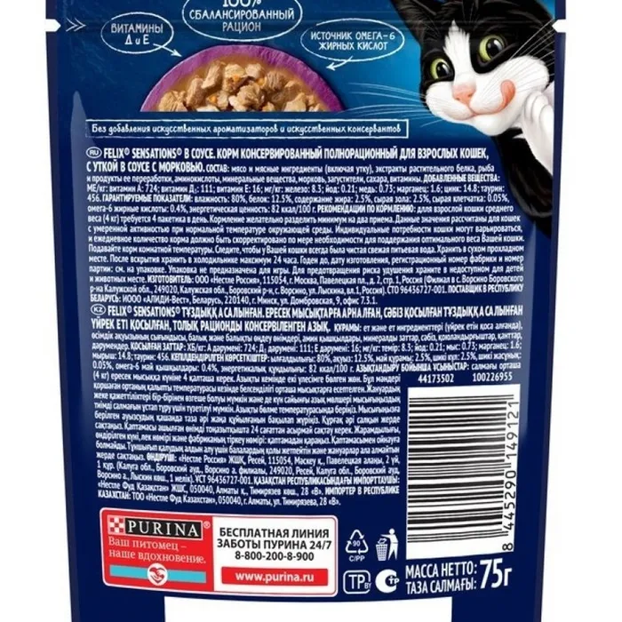 Состав:мясо и мясные ингредиенты (включая ягненка), экстракты растительного белка, рыба и продукты ее переработки, аминокислоты, загустители, минеральные вещества, сахара, витамины.