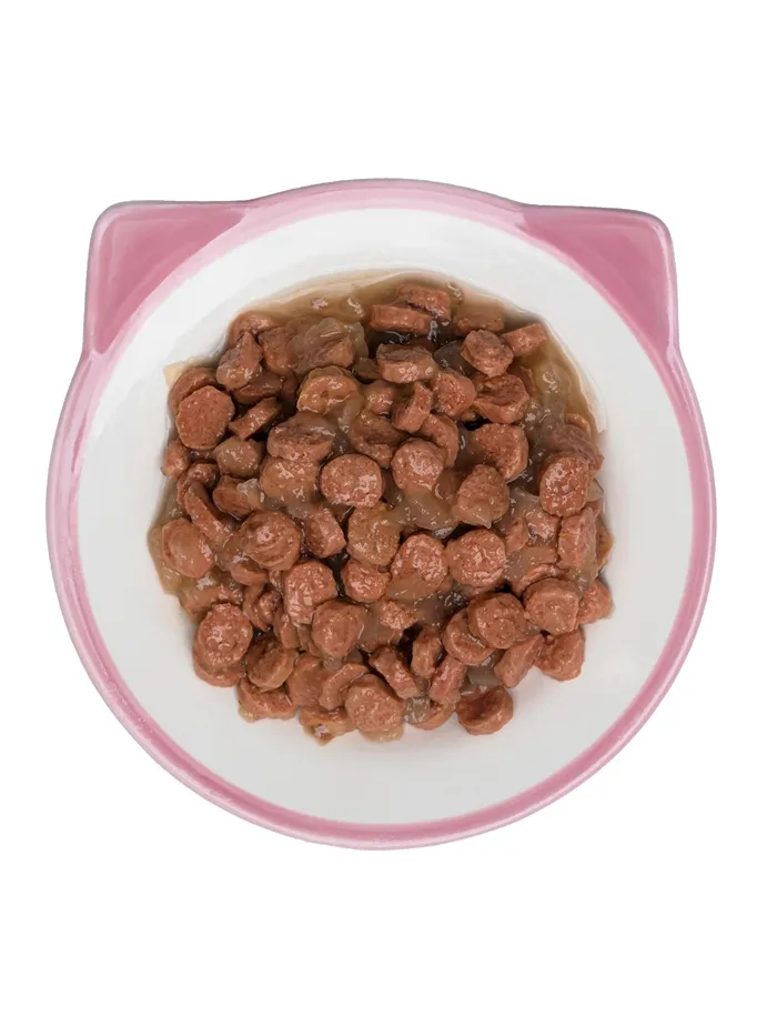 - Мягкая текстура в желе: Легко разгрызается, что важно для кошек с проблемными зубами. Желе сохраняет сочность и усиливает аромат, стимулируя аппетит.