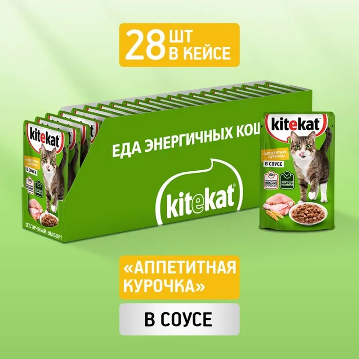 Kitekat™ «Аппетитная курочка в соусе» — полноценное питание для кошек на каждый день. Текстура соуса придает особенно сочный вкус кусочкам курочки. Корм Kitekat™ создан из высококачественных ингредиентов и содержит все необходимые для здоровья питомца полезные элементы — белки, жиры, витамины (D3, B5, B6, и др.), минералы (кальций, фосфор, магний и др.), таурин, полезные жиры и масла — в правильном соотношении, подобранном профессионалами. За счет клетчатки корм поддерживает здоровье пищеварительной системы, а благодаря сбалансированному составу — подходит и для стерилизованных кошек. Для оптимального контроля веса питомца и заботы о здоровье его ротовой полости рекомендуется сочетать влажный корм с сухими рационами Kitekat™.