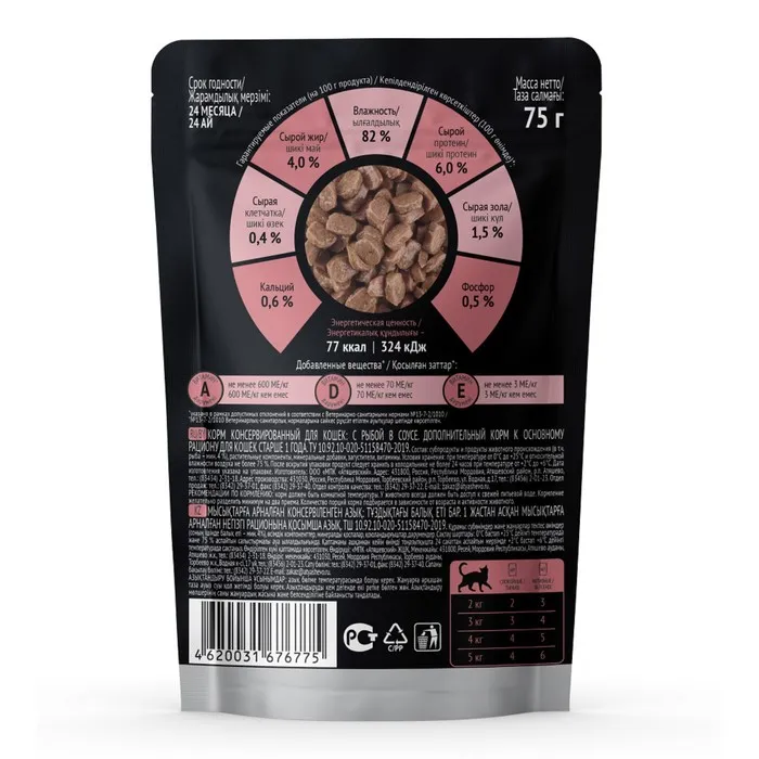Корм консервированный для кошек: с рыбой в соусе.