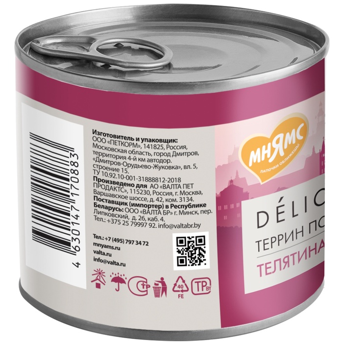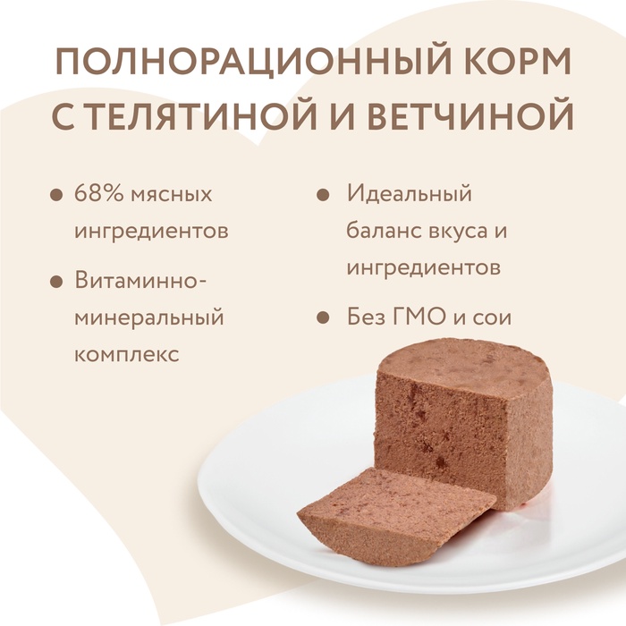 Влажный корм Мнямс Деликатес Паштет «Террин» из телятины/ветчины для собак всех пород 200 г — Характеристики