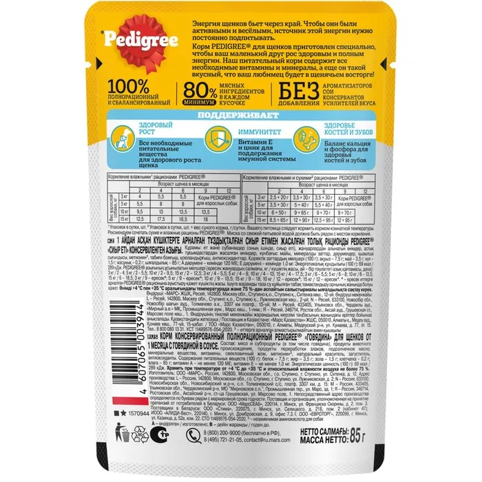 Pedigree рекомендует сочетать разные форматы корма в рационе щенков. Сочетание сухих и влажных рационов PEDIGREE — залог оптимального питания. Такое сочетание позволит удовлетворить естественные предпочтения Вашего щенка и повысить привлекательность питания.
