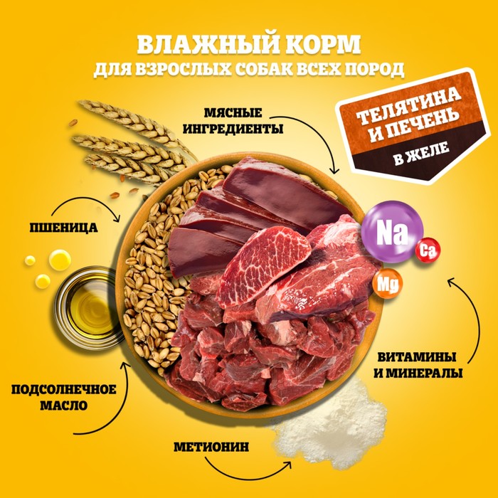 Влажный корм Pedigree для собак телячья печень, желе, пауч, 85 г — Характеристики