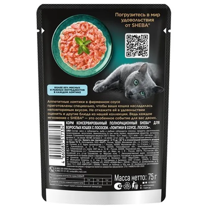 Коллекция высококачественных сбалансированных кормов SHEBA приготовлена из отборных ингредиентов: мяса, курицы и рыбы в сочетании со злаками, витаминами, таурином и минеральными веществами. Без усилителей вкуса, сои, консервантов и искусственных красителей.