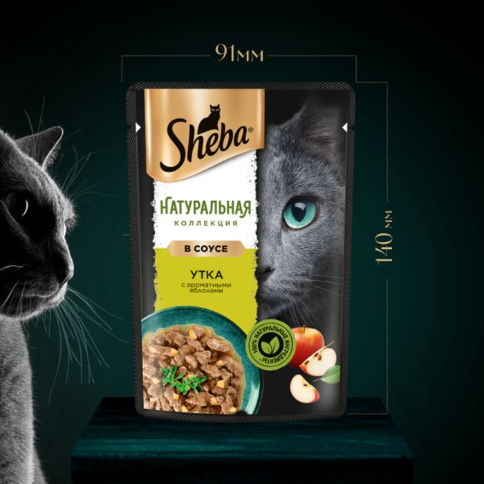 Влажный корм SHEBA линейки «НАТУРАЛЬНАЯ КОЛЛЕКЦИЯ» с уткой и добавлением яблок - блюдо из высококачественных ингредиентов, которое придётся по вкусу самым притязательным кошкам. Приготовлен по особому рецепту, чтобы раскрыть всю красоту вкуса и сохранить баланс витаминов, минералов и аминокислот, необходимых вашей любимице. Подарите своей кошке особое удовольствие, побаловав ее всеми блюдами из "НАТУРАЛЬНОЙ КОЛЛЕКЦИИ" SHEBA.