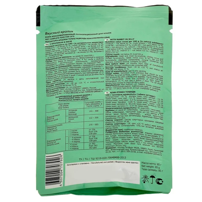 Рекомендации по кормлению: переход с предыдущего рациона следует осуществлять постепенно, небольшими порциями, в течение 5-7 дней. У кошки всегда должен быть доступ к свежей питьевой воде. При кормлении необходимо учитывать активность, возраст, размер и индивидуальные особенности Вашего питомца.
