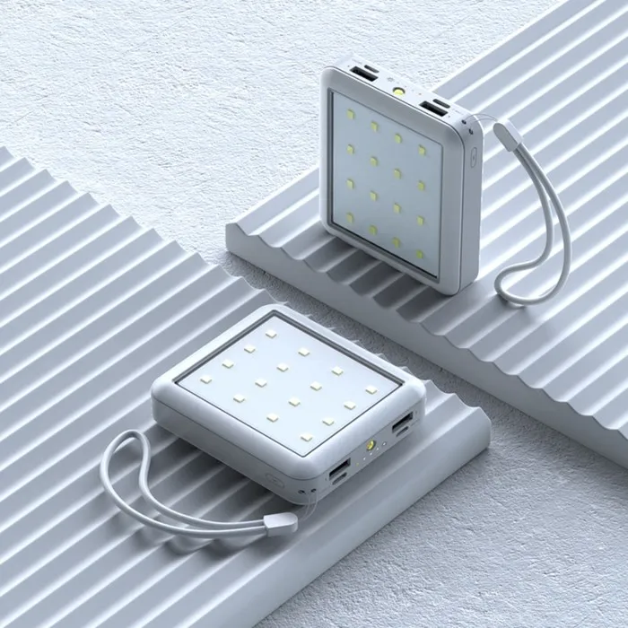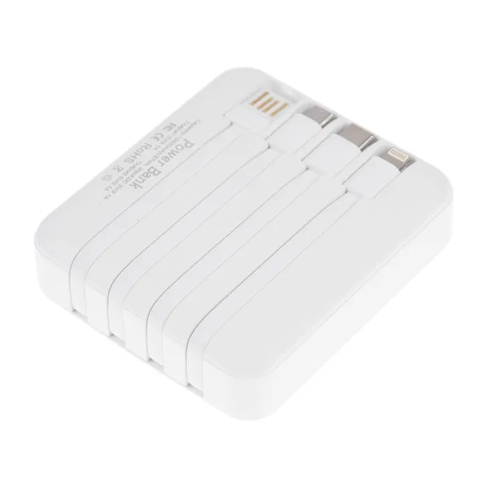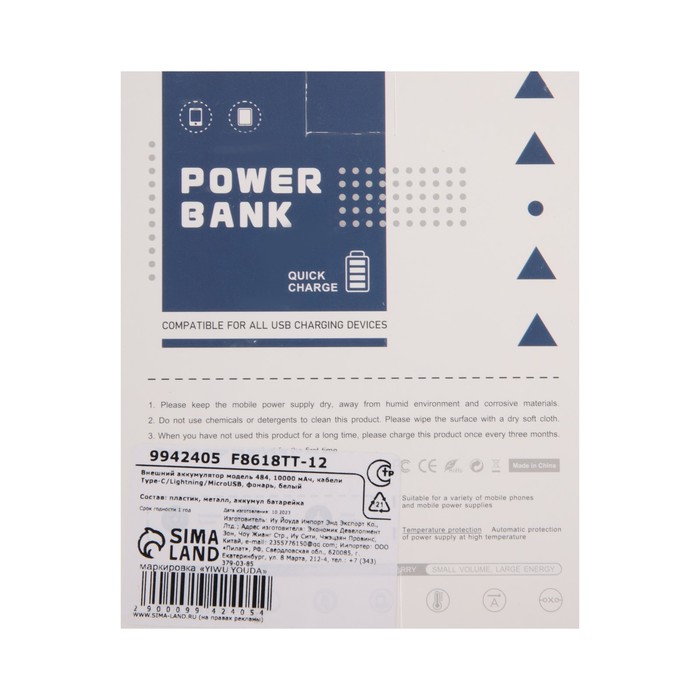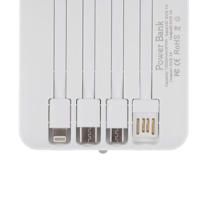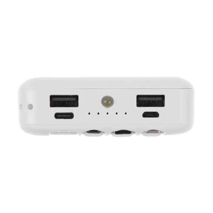 Внешний аккумулятор 484, 10000 мАч, кабели Type-C/Lightning/MicroUSB, фонарь, белый — Характеристики