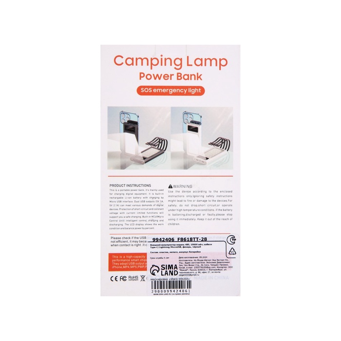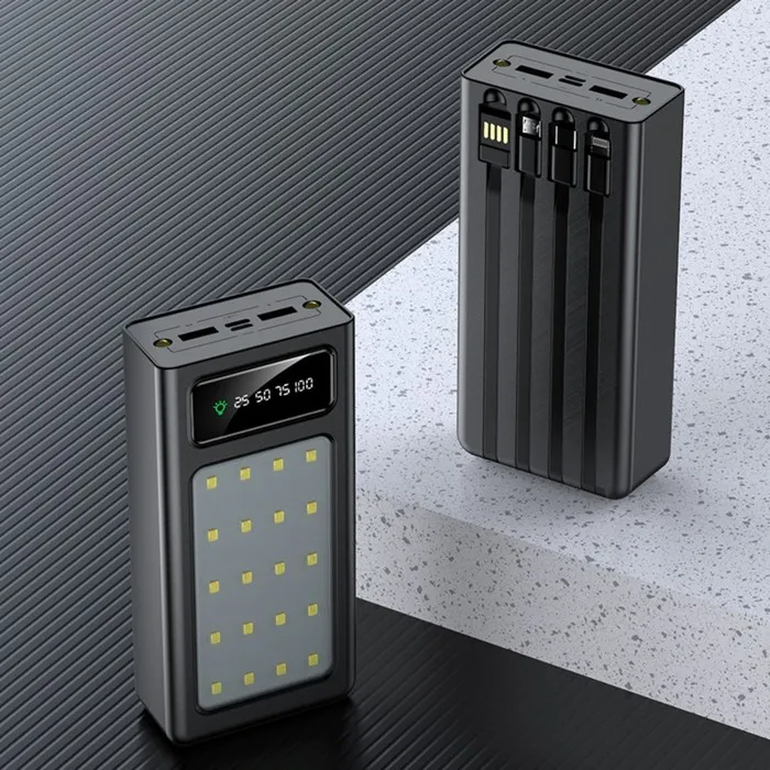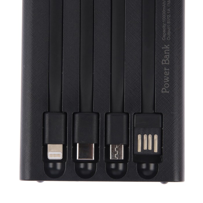 Внешний аккумулятор 485, 10000 мАч, кабели Type-C/Lightning/MicroUSB, фонарь, чёрный — Характеристики