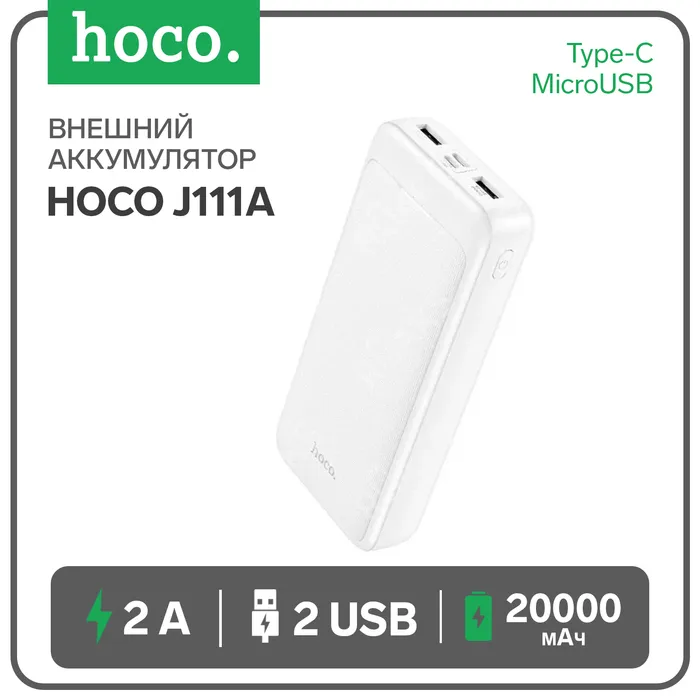 Внешний аккумулятор Hoco J111А, 20000 мАч, 2 USB, 2 А, дисплей, белый — Характеристики