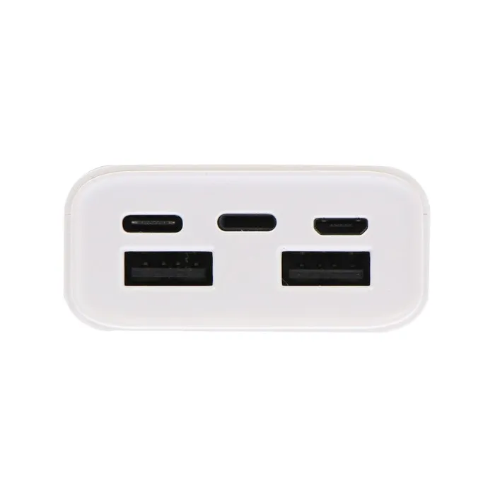 Пауэрбанк оснащен двумя выходами USB с током до 2 А, что позволяет заряжать сразу два устройства одновременно. Для зарядки самого аккумулятора можно использовать порты microUSB или Type-C, обеспечивая универсальность и удобство. Также доступен порт iP с током до 1.5 А. Встроенный дисплей отображает уровень заряда, позволяя всегда быть в курсе оставшейся емкости.
