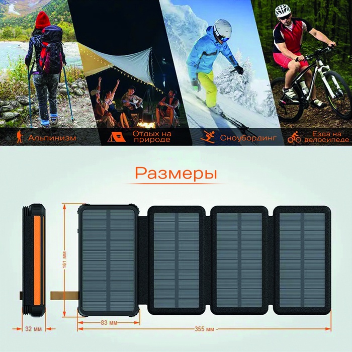 - Складная солнечная панель - всегда под рукой источник энергии.