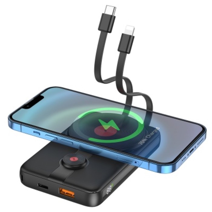 Внешний аккумулятор Hoco J92 – это надежное решение для тех, кто хочет оставаться на связи в любой ситуации. Емкость 10,000 мАч и сила тока 3 А обеспечивают быструю и эффективную подзарядку ваших устройств. Оснащен двумя USB-разъёмами и разъёмом Type-C, а также поддерживает беспроводную зарядку, идеально подходящую для современных гаджетов. Встроенный дисплей позволяет легко следить за уровнем заряда. Комплектуется кабелем с разъёмами Lightning и USB-C для максимального удобства.