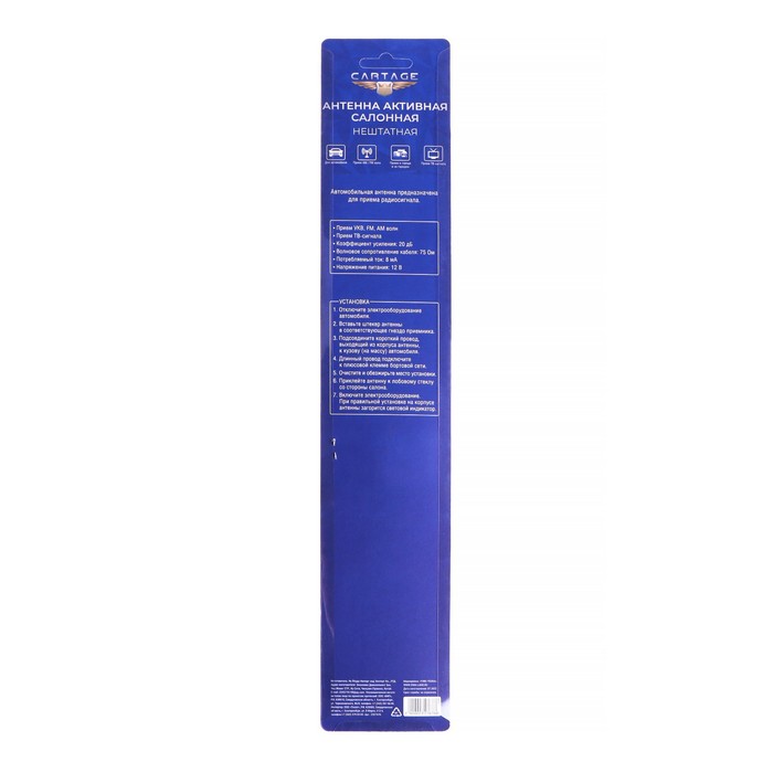 Внутрисалонная автомобильная антенна Cartage, активная 28 см, всеволновая, кабель 1,8 м — Характеристики