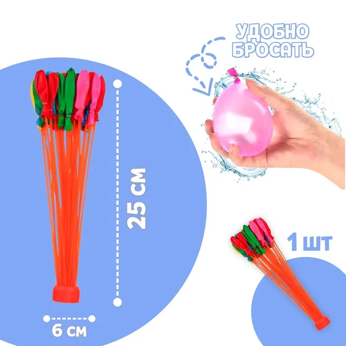 Водяные бомбочки «Шар», 1 насадка, 37 шаров, МИКС — Характеристики