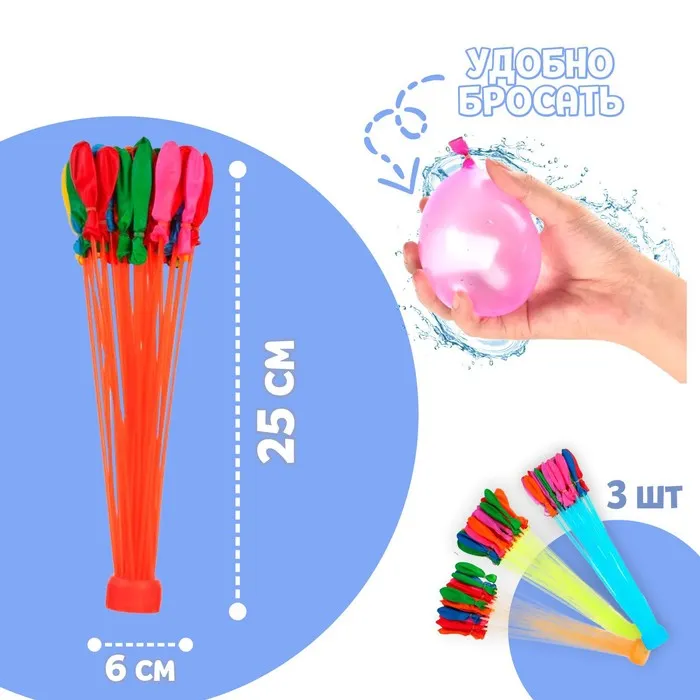 Водяные бомбочки «Шар», 3 насадки, 37 шаров, МИКС — Характеристики