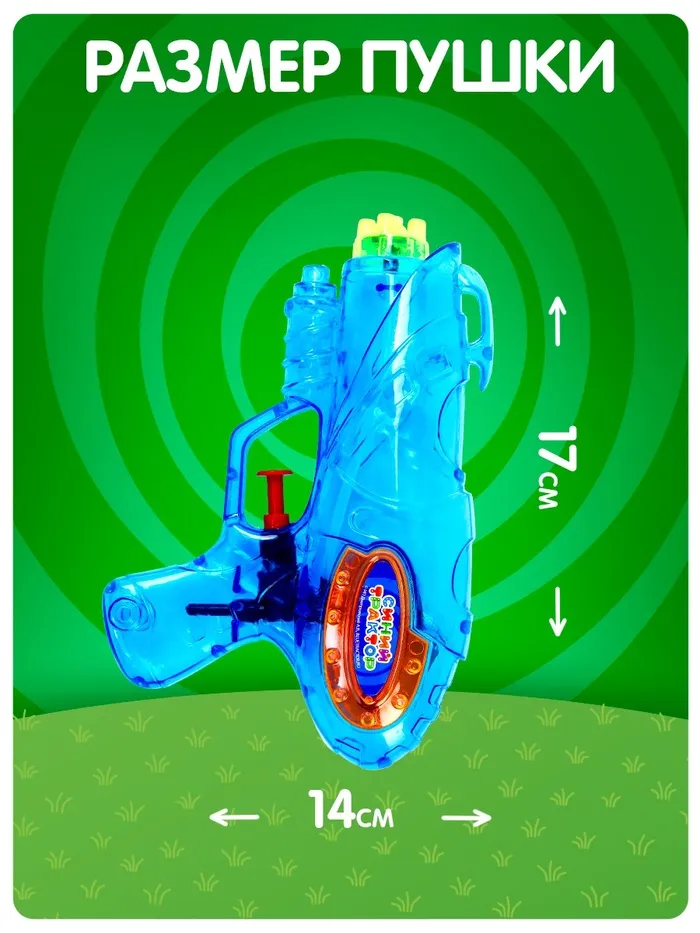 Устрой весёлый водный бой этим летом! Яркий водный пистолет — незаменимый атрибут летних игр. С ним обычный день на даче или пляже превращается в настоящее приключение. Достаточно залить 150 мл воды — и можно начинать соревнование на меткость.