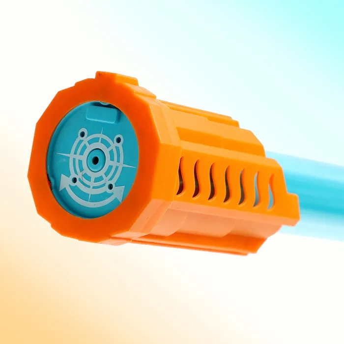 Готовьтесь к водным битвам с этой стильной и мощной водной пушкой! Благодаря удобной конструкции и увеличенному резервуару, она обеспечит долгие часы захватывающих игр на свежем воздухе.