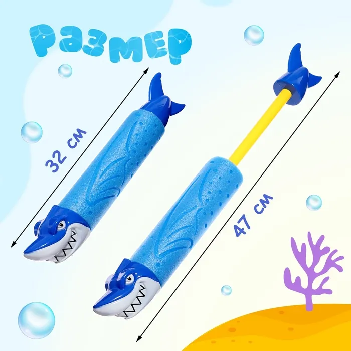 Эта компактная и яркая водная пушка – идеальный выбор для летних игр на свежем воздухе. Весёлый дизайн в виде хищной акулы добавит азарта каждой водной битве!