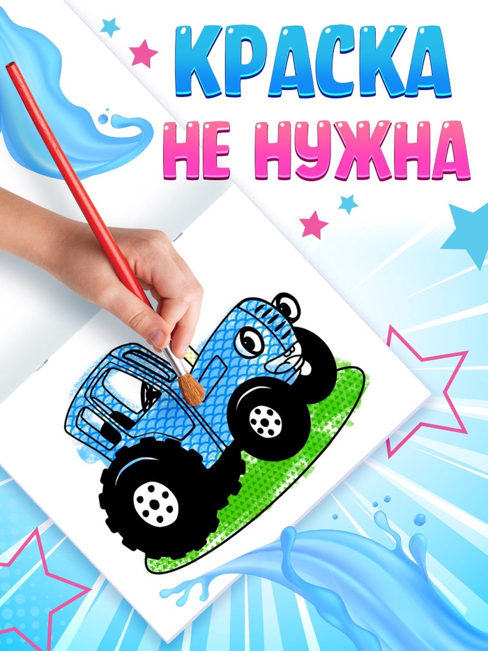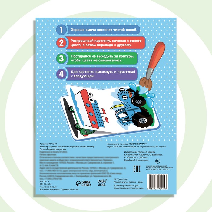 Водная раскраска «По полям и дорогам», 12 стр., 20 × 25 см, Синий трактор — Характеристики