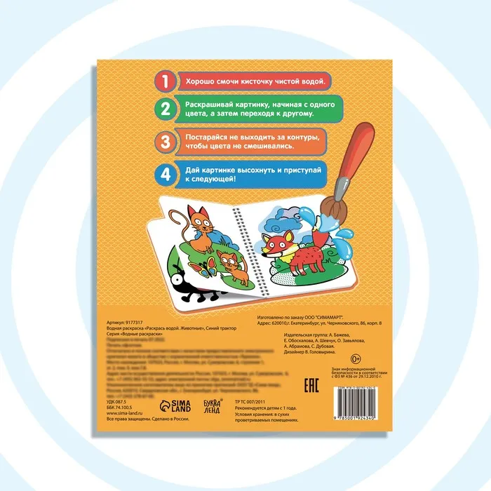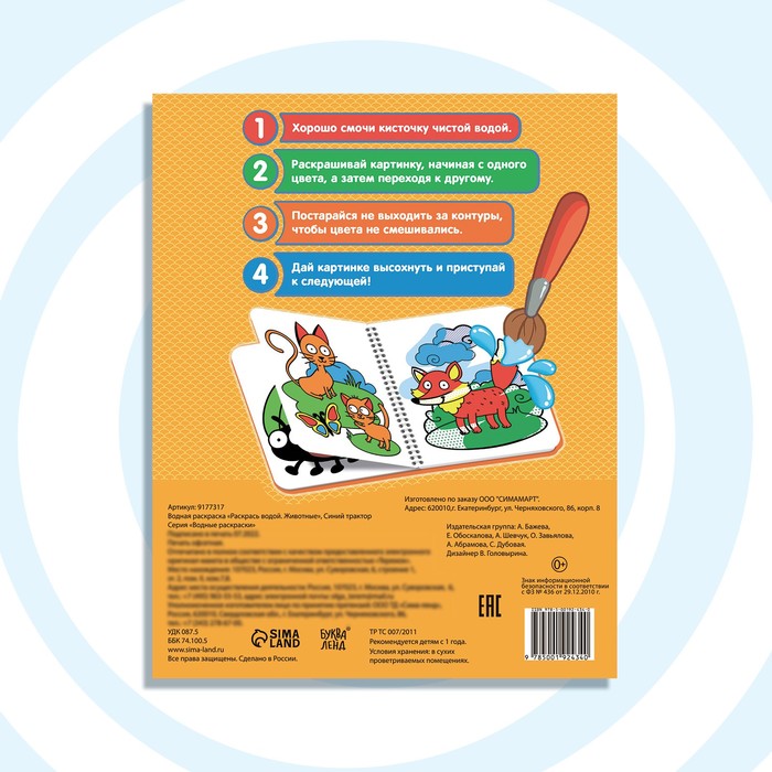 Водная раскраска «Раскрась водой. Животные», 12 стр., 20 × 25 см, Синий трактор — Характеристики