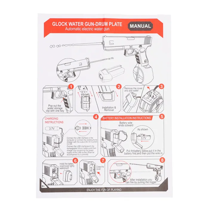Водный пистолет «Глок» с автоматическим режимом станет отличным выбором для летних развлечений. Компактная модель, работающая от аккумулятора, идеально подойдёт для игр на улице и весёлых водных баталий.
