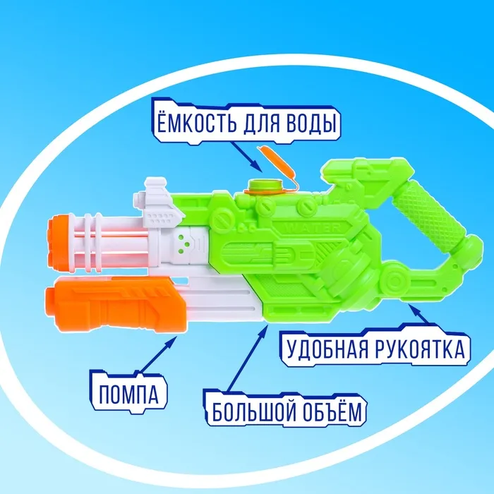 Водный бластер «Ярость», с накачкой; 43 см., цвет МИКС — Характеристики