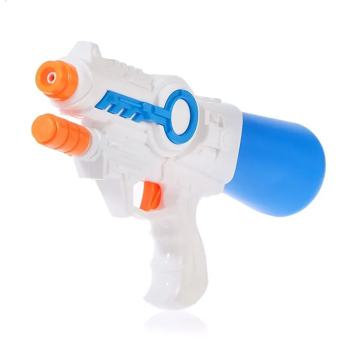- Сильная струя: насосный механизм обеспечивает хороший напор воды — ребёнок сможет уверенно участвовать в водных сражениях.