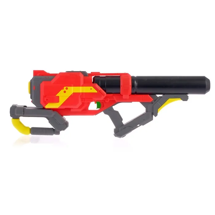 - Для начала стрельбы необходимо создать давление помпой. Пистолет не имеет курка — дуло качает воду, как насос.