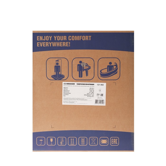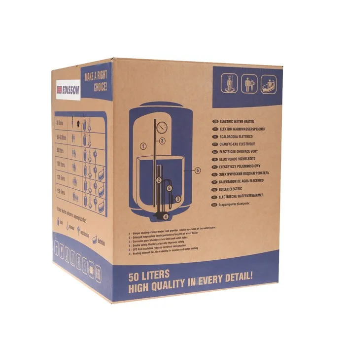 С водонагревателем EDISSON в доме всегда будет горячая вода. Такой агрегат сделает вас независимым от коммунальных служб. Данная модель органично впишется в интерьер благодаря классическому дизайну.