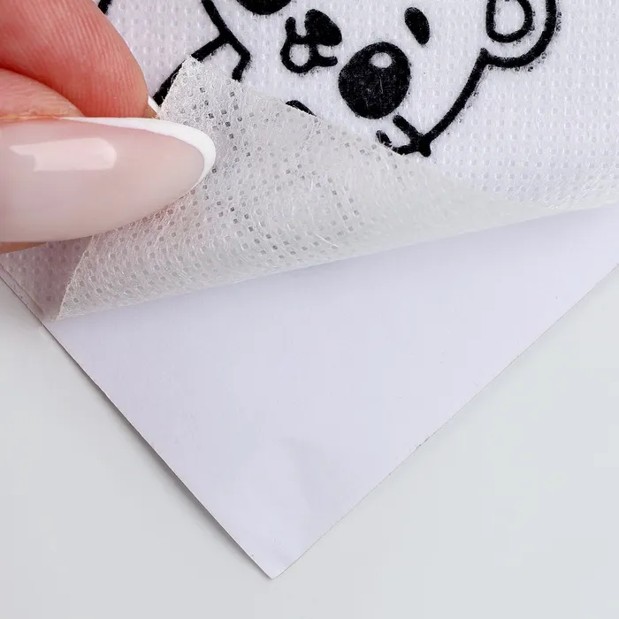 - Нанесите стикер на ткань: Просто наклейте выбранный рисунок на поверхность ткани — это занимает всего несколько секунд.