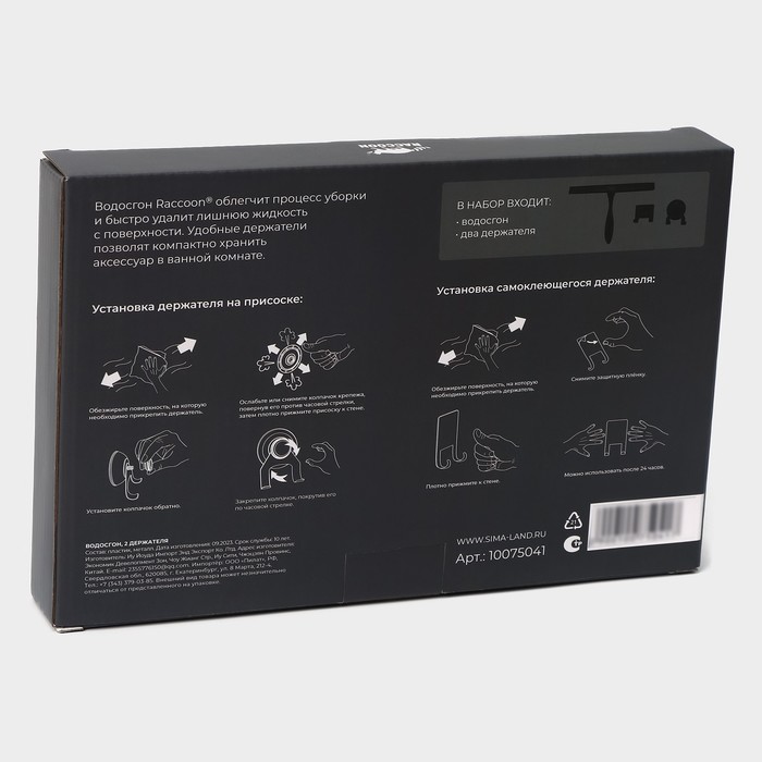 Водосгон из нержавеющей стали с комплектом держателей Raccoon, 25×16 см, 304 сталь, чёрный — Характеристики