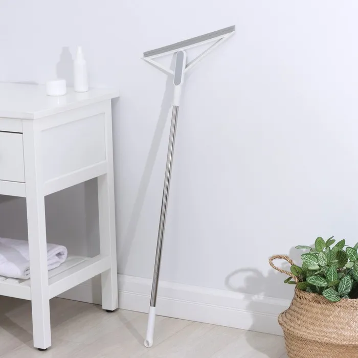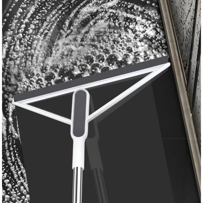 Это универсальная силиконовая швабра, сочетает в себе функции скребка, метлы и веника, подходит для влажной и сухой уборки. Его можно использовать для мытья стеклянных и кафельных поверхностей, а также пола, ванны, автомобиля. В качестве веника, изделие прекрасно собирает шерсть и мусор.