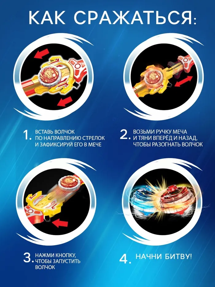 - В наборе 4 волчка, 2 устройства для запуска, арена: малыш сможет устроить настоящие соревнования.