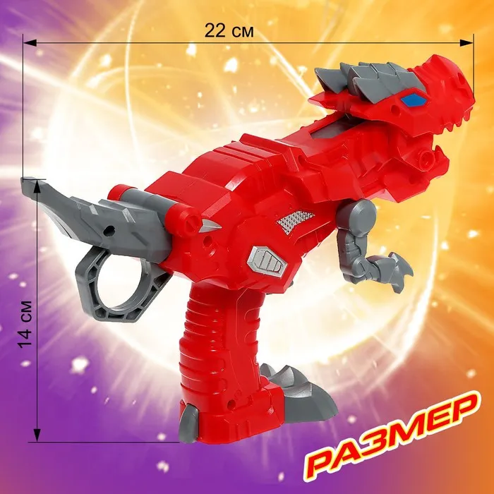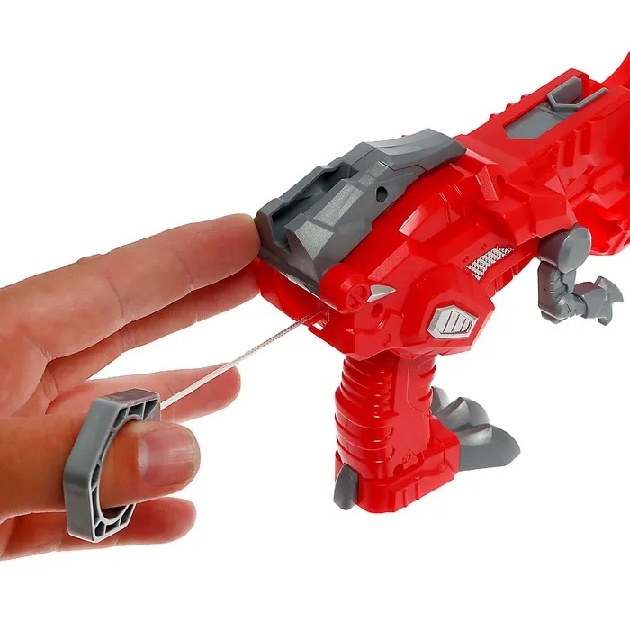 - Динозавр красного цвета выступает в роли пистолета-запускателя.
