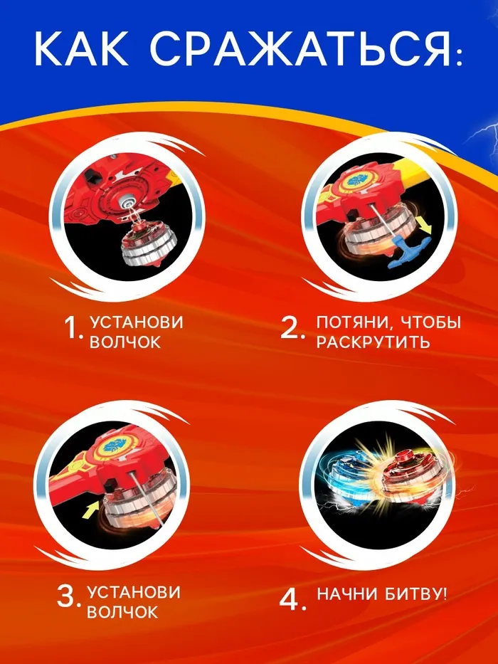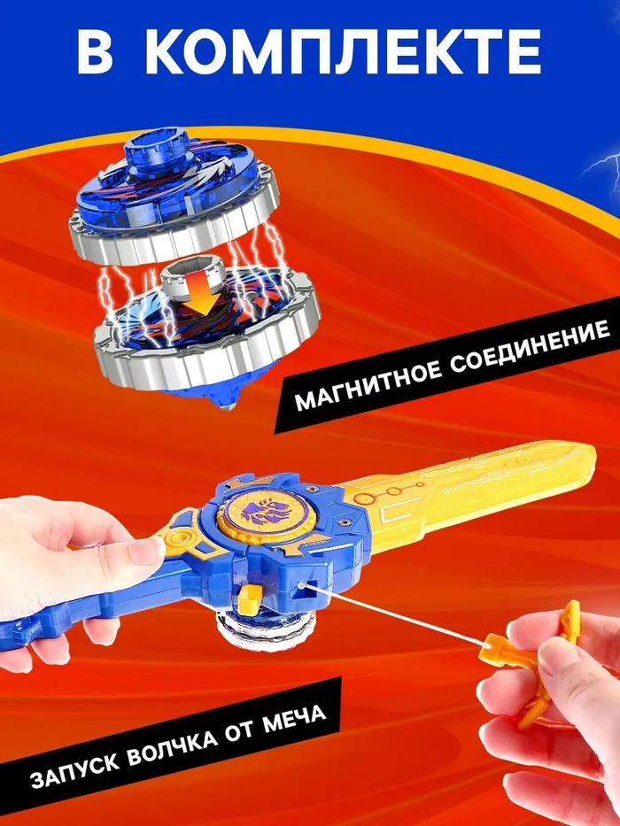 - Включает 1 волчок и 1 устройство запуска (меч).