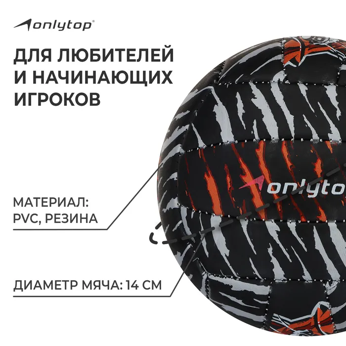 Волейбольный мяч ONLYTOP «Тигр», машинная сшивка, 18 панелей, р. 2, PVC