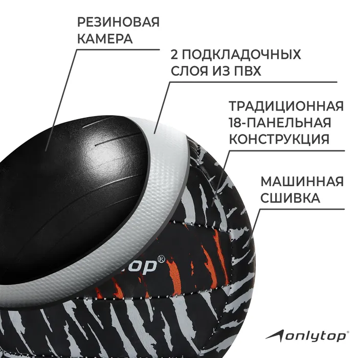 Волейбольный мяч ONLYTOP «Тигр», машинная сшивка, 18 панелей, р. 2, PVC — Характеристики