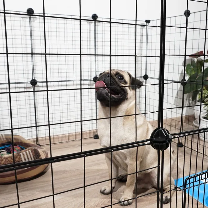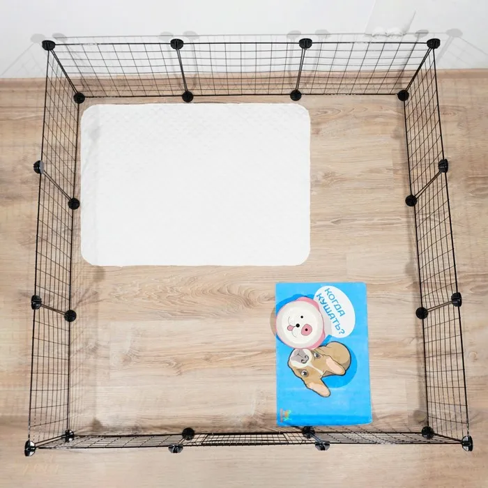 Полезные советы: позаботьтесь о том, чтобы собаке было комфортно внутри ограждения - установите удобную миску на прутья и постелите мягкий коврик.
