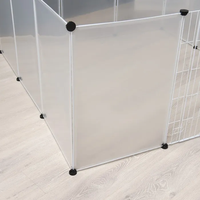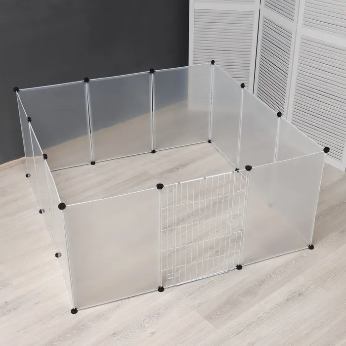 Вольер (клетка) сделан из пластиковых секций, легко собирается без использования инструментов. Размеры и форму вольера Вы можете менять по собственному желанию. Сборный вольер-клетка для животных. Пластиковые секции легко собираются в конструкцию нужной конфигурации, можно сделать даже с крышей.