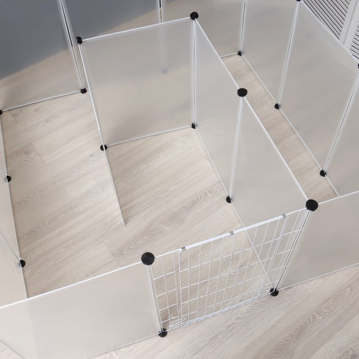 Конструкция вольера проста в сборке и удобна в использовании - при желании можно конструировать вольеры разной формы, площади.