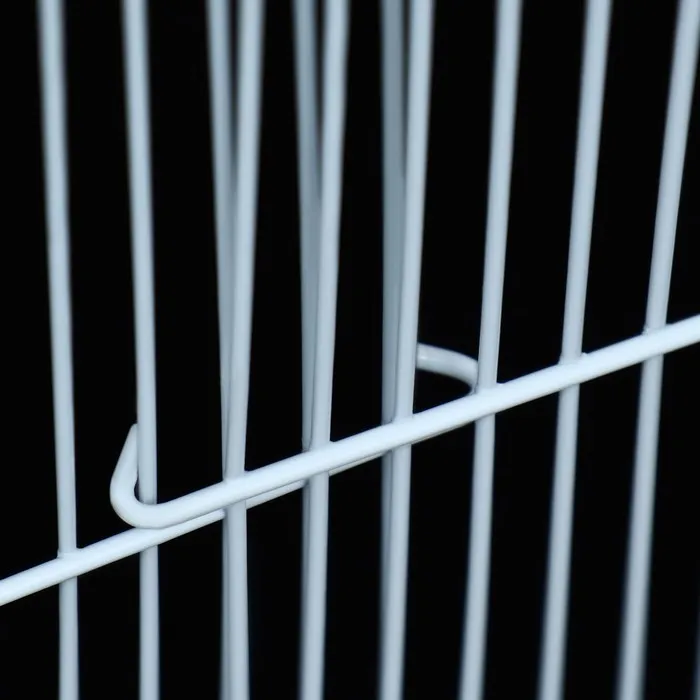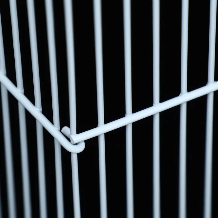 Вольер имеет две скользящие защелки с надежным замком, что означает, что ваш домашний любимец не сможет самостоятельно открыть дверцы вольера. Панели вольера надежно скрепляются соединительными стержнями по всей длине.