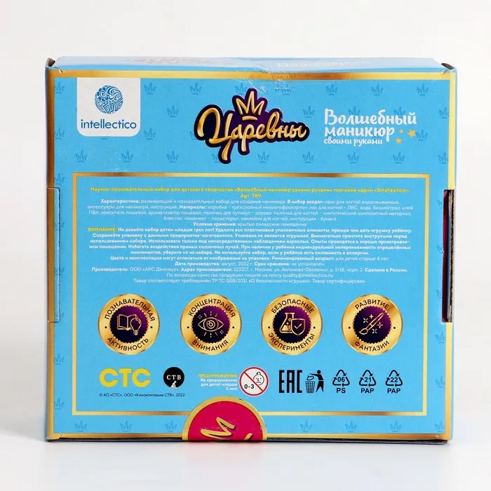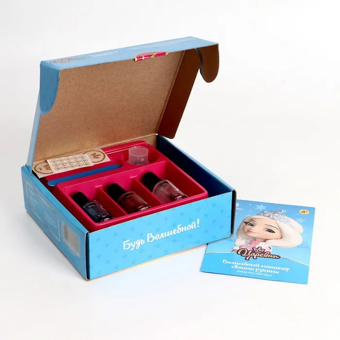 Набор для творчества «Волшебный маникюр своими руками» поможет юной моднице освоить основы ухода за руками вместе с любимой героиней мультфильма — Алёнкой. Яркие, безопасные и легко смывающиеся лаки с ароматом клубники позволяют делать новый маникюр каждый день.