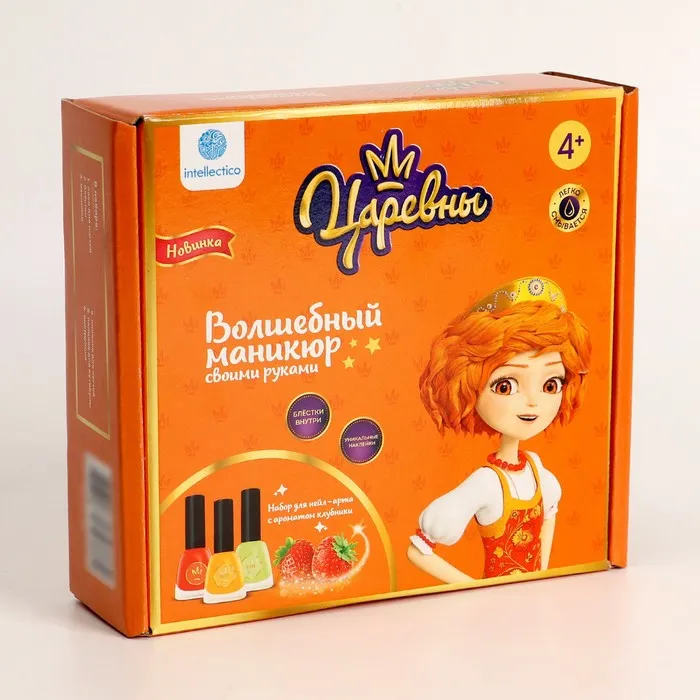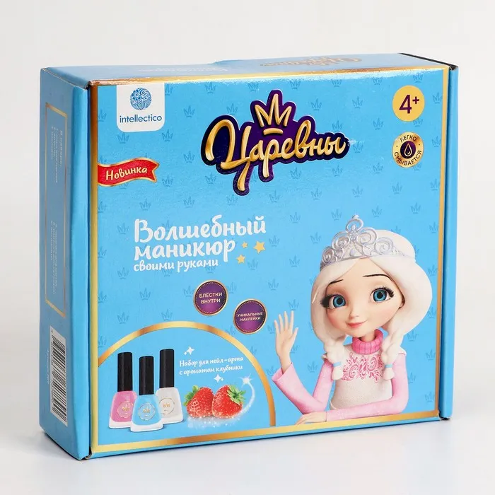 Набор для творчества «Волшебный маникюр своими руками» поможет юной моднице освоить основы ухода за руками вместе с любимой героиней мультфильма — Василисой. Яркие, безопасные и легко смывающиеся лаки с ароматом клубники позволяют делать новый маникюр каждый день.