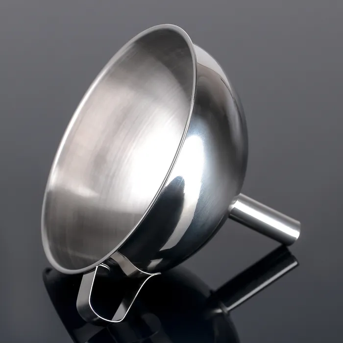 Воронка из нержавеющей стали подойдет для работы как с жидкостями, так и с мелкими сыпучими продуктами. С ее помощью удобно отмерять или пересыпать сахар, пшено. Ручка позволит удерживать воронку в нужном положении. Аксессуар выполнен из нержавеющей стали, а значит, не подвержен окислению, коррозии.