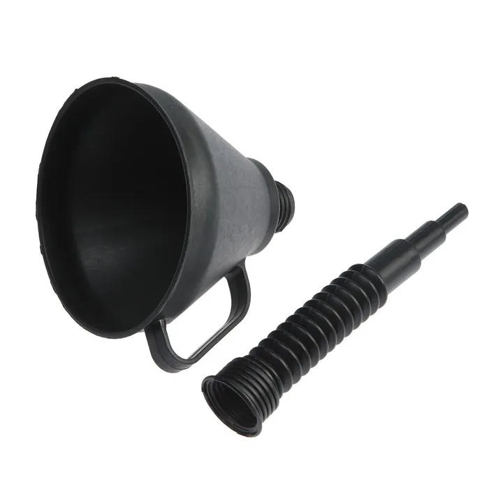 Модель выполнена в следующих размерах: диаметр воронки 160 мм, диаметр носика 13 мм и длина 260 мм. Воронка оснащена гибким, съёмным, гофрированным наконечником для наиболее удобной эксплуатации. Ручка обеспечит удобством во время работы.