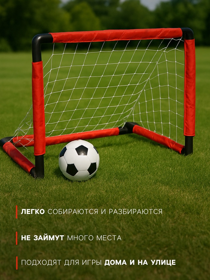 Футбольные ворота подходят для игры дома и на улице. Легко собираются и разбираются, благодаря компактным размерам не займут много места. Игра в футбол укрепляет мышечный корсет, развивает координацию движений, выносливость, меткость и ловкость.