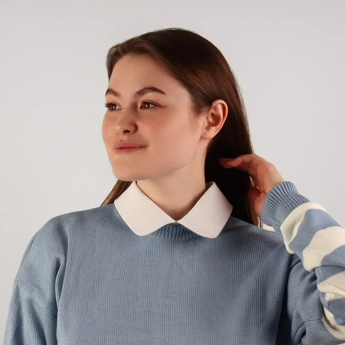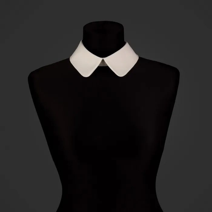 Накладной воротник идеально подойдёт для тех, кто любит дополнить свой образ акцентной деталью. Достаточно наложить воротник поверх одежды и застегнуть сзади на пуговку. Прекрасно сочетается с лёгкой кофточкой, джемпером или свитшотом.